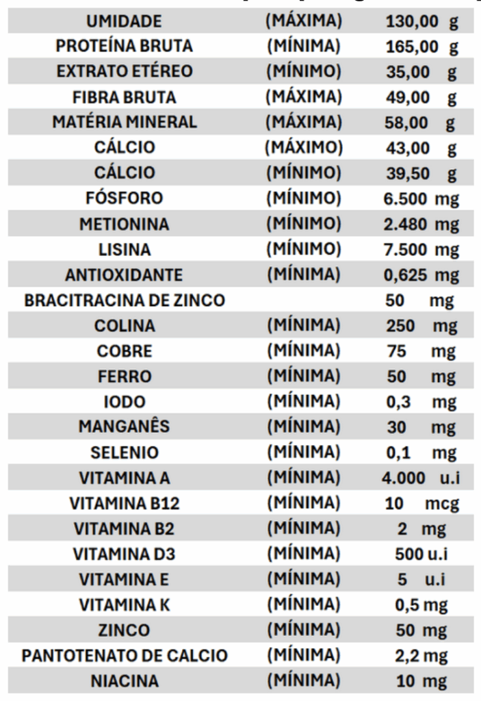 Ração para ser usada em aves de postura em fase de produção.